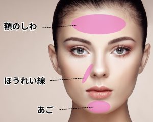 施術部位は、おでこ、眉間、目尻、エラ、口角となります。